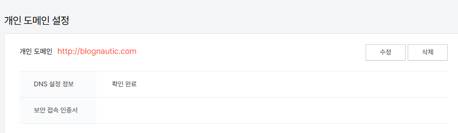 3. 구매한 도메인(blog.example.com 등)을 입력하고 저장